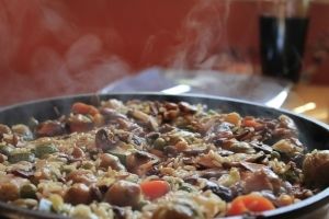 Heerlijke Spaanse paella met zee vruchten en chorizoworst