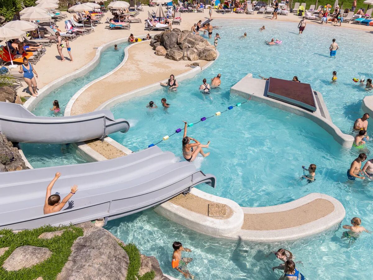 Een van de absolute hoogtepunten van camping Domaine des Bans is ongetwijfeld het enorme waterparadijs, dat garant staat voor urenlang spetterplezier voor alle leeftijden. Je vindt hier verschillende verwarmde zwembaden, waaronder een semi-olympisch bad dat met slecht weer overdekt kan worden. Voor de nodige adrenaline zijn er diverse glijbanen, die je met een noodgang naar beneden laten zoeven, terwijl de allerkleinsten veilig kunnen spetteren in het ondiepe peuterbad. De kleintjes vermaken zich hier met leuke waterspellen, kantelemmers en spuitende fonteinen.