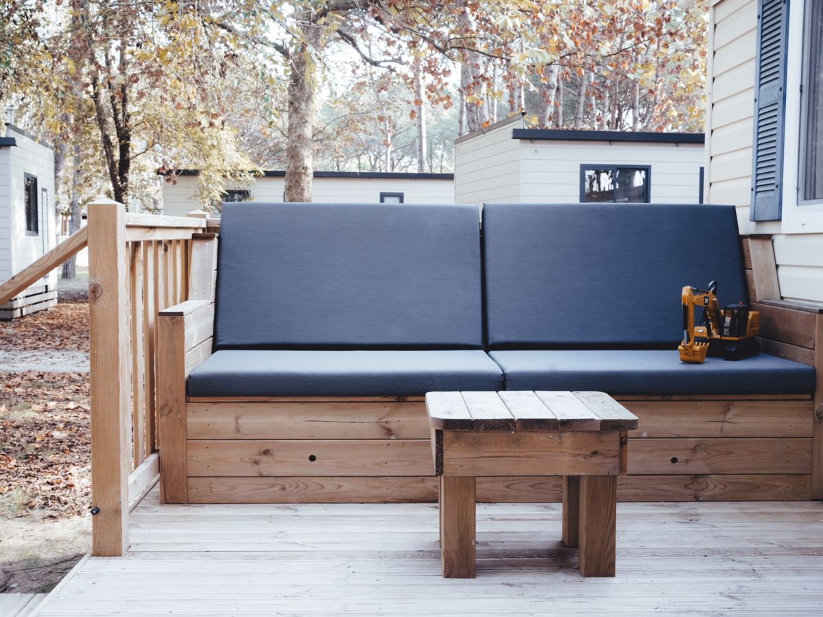 De stacaravan Classic Relax is voorzien van een overdekte houten veranda met hierop een tweepersoons loungebank met kussens. Daarnaast is er een standaard tuinset met o.a. twee verstelbare stoelen. Op de campingpagina kun je lezen over welke gratis barbecue/grillplaat jouw accommodatie beschikt. Onze eigen medewerkers zorgen voor het onderhoud, zodat je altijd vakantie viert in een prima verzorgde, complete stacaravan! Ook de uitgebreide inventaris is met zorg uitgekozen.