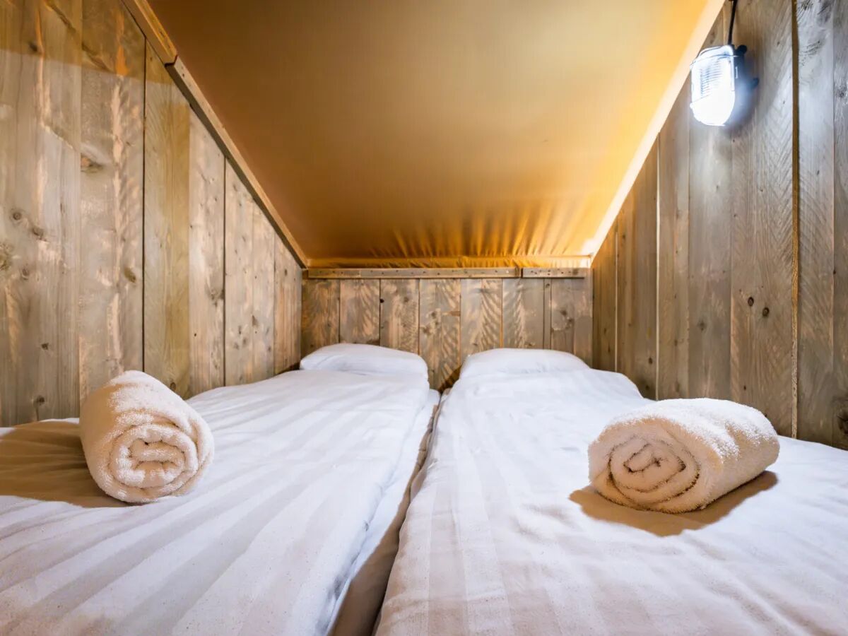 In de grote slaapkamer staat een ruim tweepersoonsbed en in de tweede slaapkamer staan twee éénpersoonsbedden. Kinderen zullen erg enthousiast over zijn over de derde slaapkamer. Zij kunnen hier met 2 personen slapen in de gezellige bedstede. Voor nog meer comfort zijn onze lodgetenten standaard voorzien van kussens en éénpersoonsdekbedden. Je kunt voor jouw peuter gratis een bedrekje reserveren.
