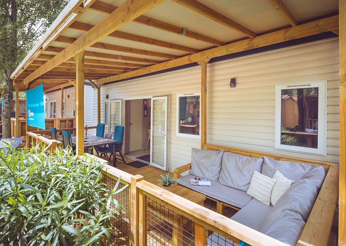 Airco Veranda Veranda hekje Loungebank VaatwasserDe Premium Lounge is uitgerust met een luxe overdekte veranda van maar liefst 19 m2 én met comfortabele loungebank.